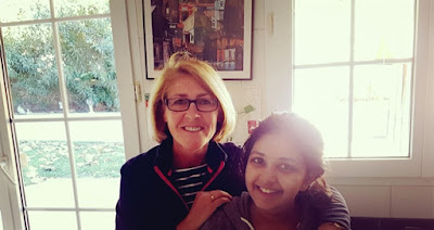 Just as I was making my quasi Indian dish, I was joined by our Indian guest, Nisar, who was staying with the family from Galicia (Nigran in Vigo) who had reserved our house on Home Away when they came for a wedding in Boadilla last weekend. She is such a lovely girl and had lived in Spain with the family on an exchange 2 years ago and learned Spanish perfectly. However, she and I spoke in English. She told me that in her family their main language was English and that her Hindi was really bad which sort of surprised me. From Bombay, aged 21 she is a student of journalism. She seemed to me a very modern young Indian Muslim girl with all the right values. I asked her opinion on my curry and she politely said it smelled very good hahaha. I was sad to see her leave when the family left that morning and had to have a photo with her before they left. It's not a good one but one to remember her by.