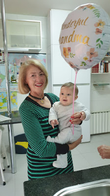 I was busying myself laying the table for breakfast when in came little Elliot carrying a great big balloon with the words "wonderful grandma". It melted my heart and I had to hold my darling grandson for a picture of the moment.