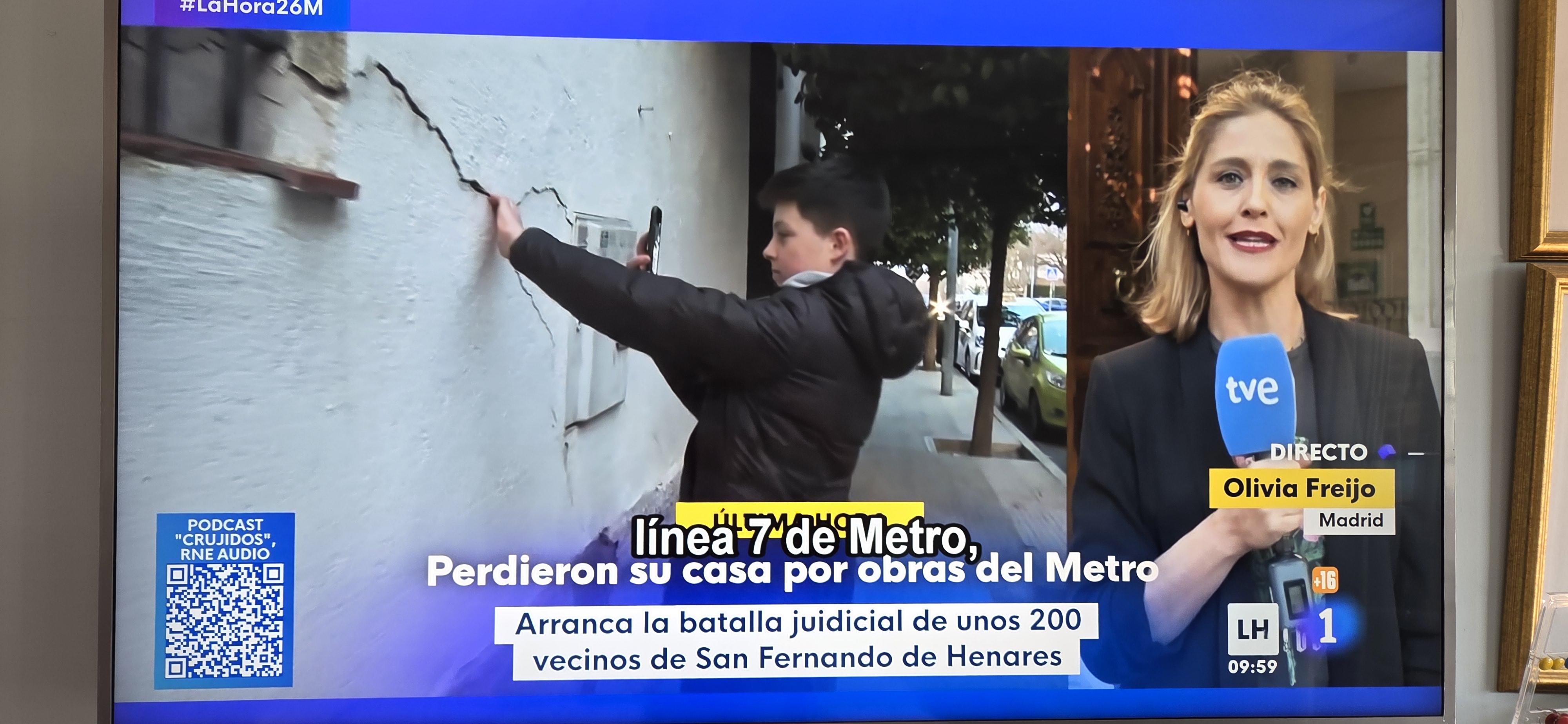 For once that morning, Oli told me on time to watch her live on TV. I do wish she would always tell me and wouldn't be so blasé about it. Anyway, I was happy to watch her, not so the story which was about houses affected and ruined by works done on one of the Metro lines some years ago in San Fernando de Henares.